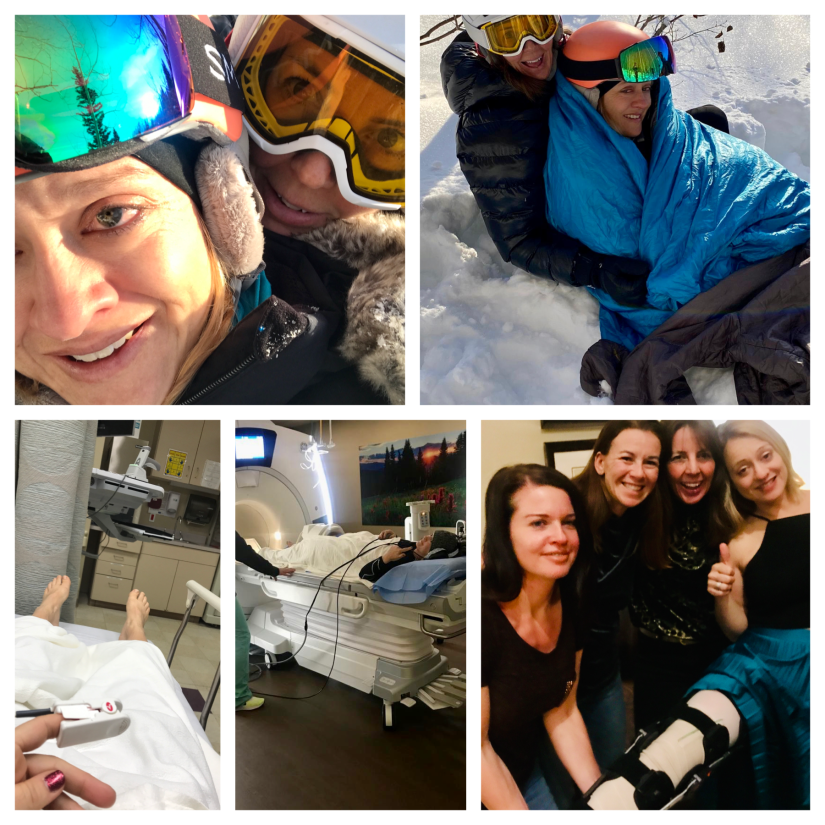 As I skied through a bunch of narrow aspens it passed through my head that I’d made it to the 14th run of another epic powder-cat day unscathed. 10 metres from the end of the run & the road below things get a bit hazy. I clipped something & my left ski got stuck in between 2 aspen trees & I rotated around ending up both skis still attached with my right ski up & behind me. There was a “pop”sound that I both heard & felt as my knee hung at about 90degrees with a big valgus (outwards time inwards) stress. I wailed like some injured animal knowing in that instance what had happened & that I wasn’t going to be running or doing much of anything for a while.